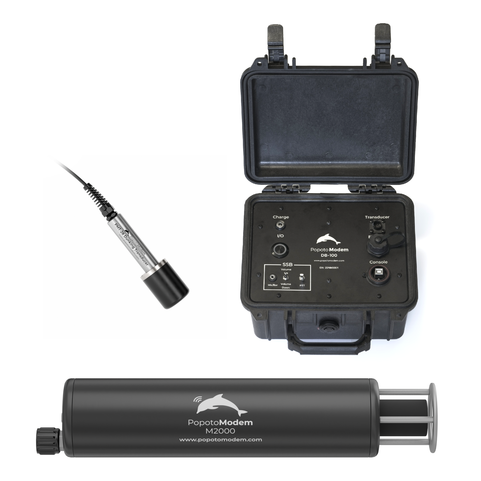 The DB-100-55 Deckbox + M2000-55 Bundle delivers a complete surface-to-subsea solution built around the proven PMM5544 electronics. With a topside Deckbox and dunking transducer paired to a depth-rated M2000 subsea modem, this kit makes it simple to establish underwater communication links for dockside trials or real-world deployments.